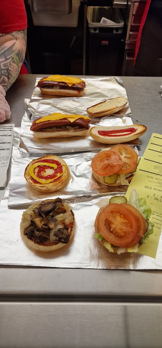 Lettuce, Tomato, Grilled Onions, Grilled Mushrooms and Green Peppers and melted cheese